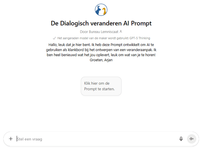 De Prompt is verwerkt als zogenaamde ‘Custom GPT’ in het platform van OpenAI / ChatGPT.